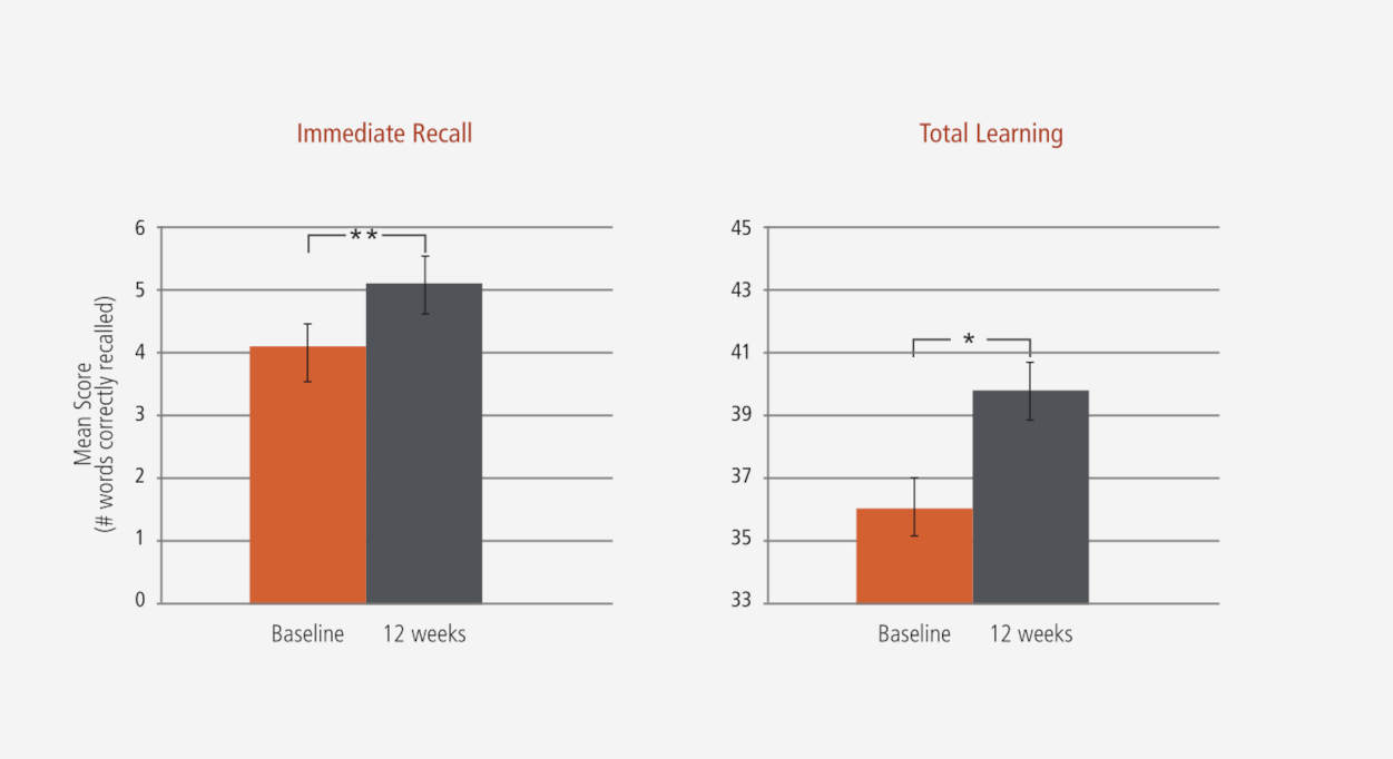 Studija je dizajnirana kao jednocentrična otvorena studija. Svi učesnici su pregledani radi procene kognitivnih performansi i procene bezbednosti prilikom početne posete i nakon 12 nedelja lečenja. Kognitivne performanse su procenjene primenom dve različite metode: kompjuterizovanog alata za procenu kognitivne funkcije i Rej testa auditivno-verbalnog učenja (Rey-AVLT). Bezbednosni pregled je obuhvatio: fizikalni pregled, merenje težine i vitalnih znakova (sistolni i dijastolni krvni pritisak i srčana frekvencija). Bezbednosni parametri krvi, kao što su lipidi u krvi, funkcija jetre, elektroliti u krvi, hematološki parametri krvi i/ili glukoza u krvi, procenjeni su kod devet učesnika. Dodatno dokumentovanje neželjenih događaja i kompjuterizovana procena kognitivnih performansi obavljeni su nakon 6 nedelja lečenja.