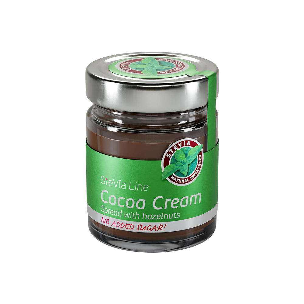 Stevia Line krem neodoljivim ukusom crne čokolade i pistaćima spada po svom ukusu i teksturi u premium proizvode. Bez dodatog šećera, zaslađen stevijom, pogodan je za dijabetičare. Krem ne sadrži componente životinjskog porekla, pogodan je za vegane i ishranu u vreme posta.
